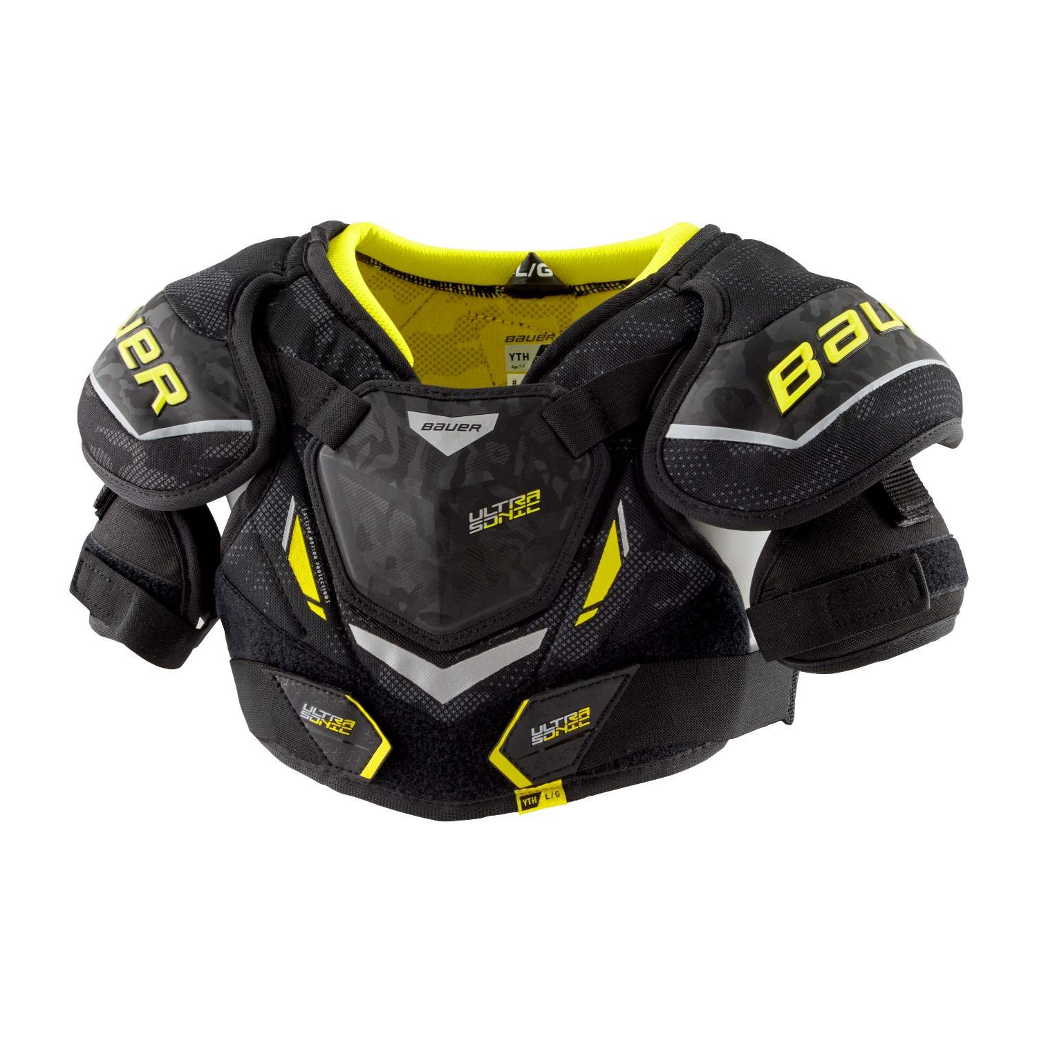 Ultrasonic axelskyddet är konstruerat med ADAPTIV Skin och VENT ARMOUR som är Bauers senaste skyddssystem. Materialet ger dig som spelare en optimal passform mot kroppen för en optimal rörlighet. I axelskyddet erbjuds flera lager skydd för att minska mot kollisioner, slag och skärsår, dessutom är skyddet förlängt vid revbenssektionen mot tidigare.